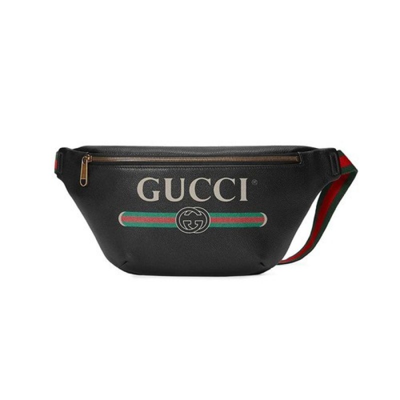 Gucci Logo-Print Leather Belt Crossbody Bag, Black Color