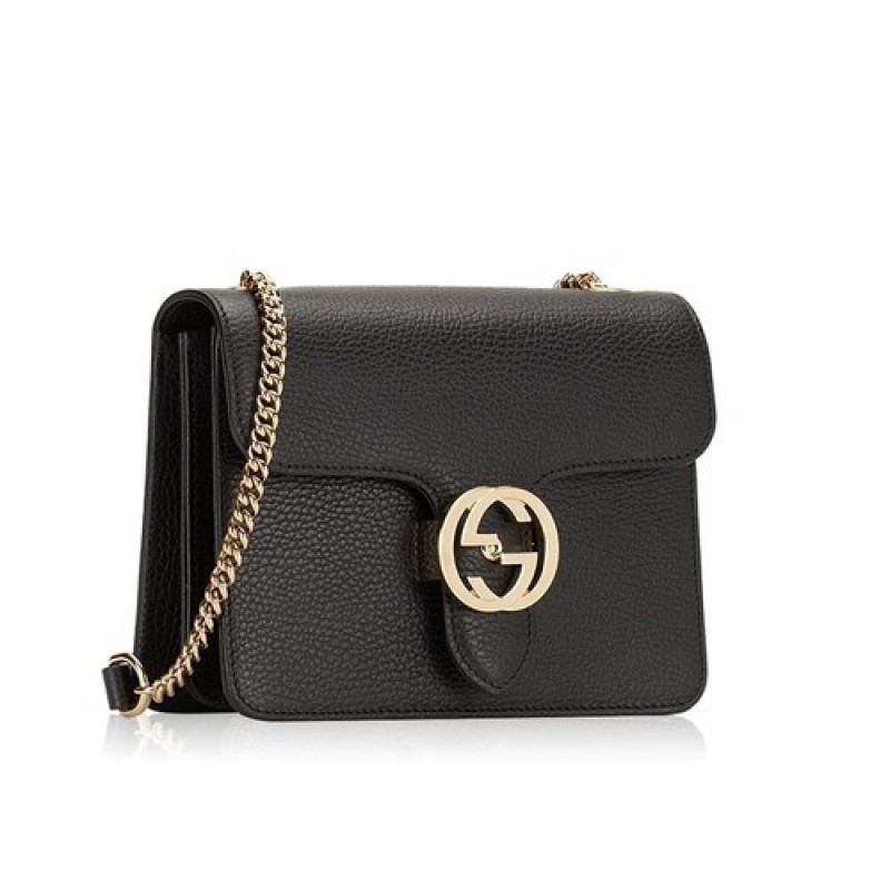 Gucci Interlocking Leather Chain Crossbody Bag, Black Color