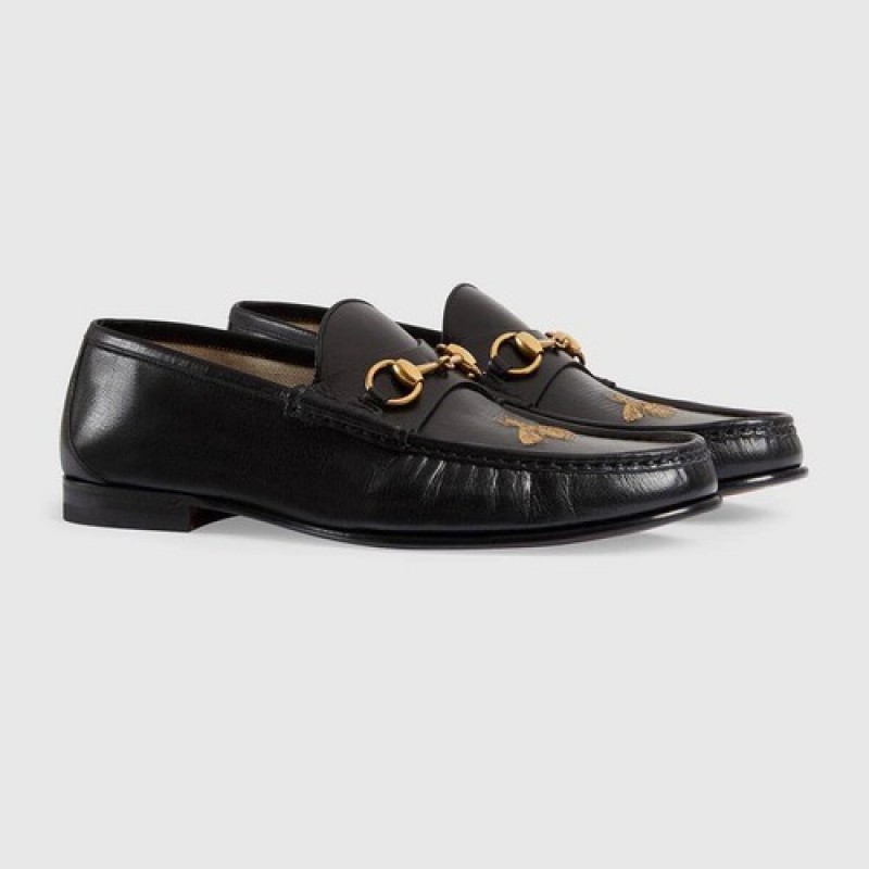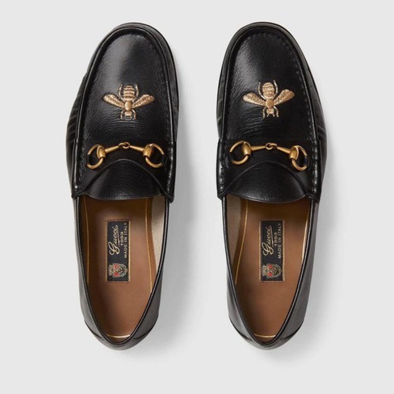 Gucci Leather Loafer With Bee, Black Color, Size 42