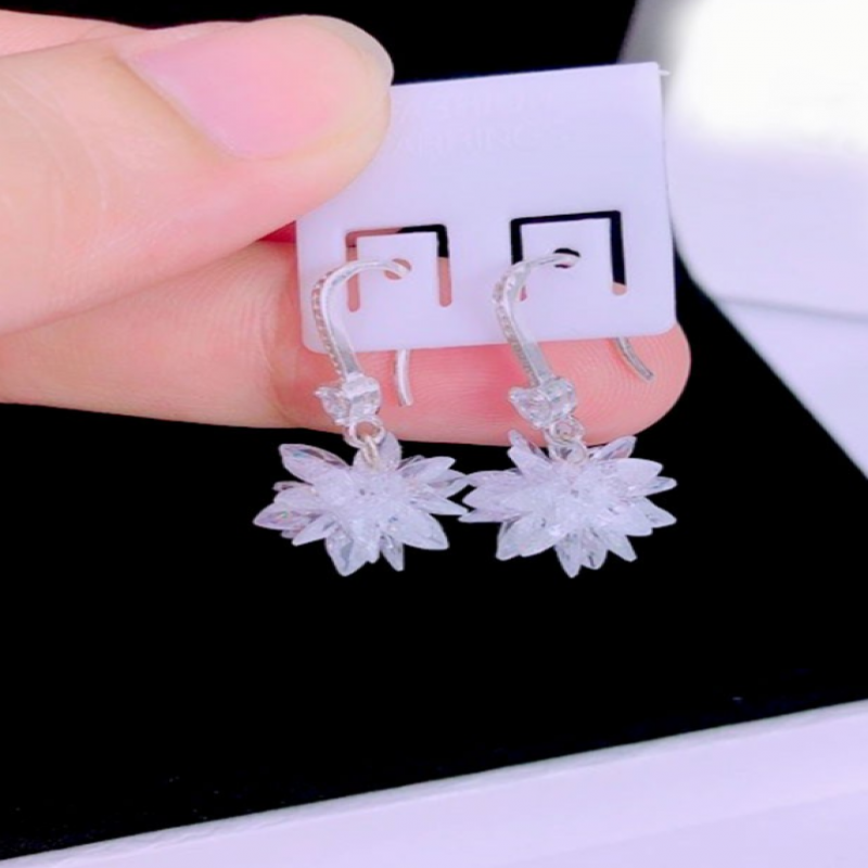 Custom-Style Women's Silver Earrings with White Cobic Stone