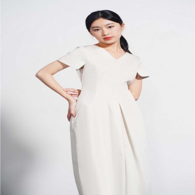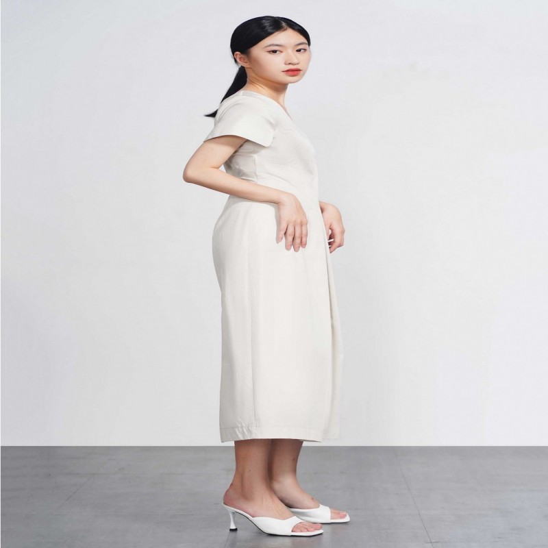 A-LINE SHORT-SLEEVE COTTON FITTED DRESS - 10S21DREW014