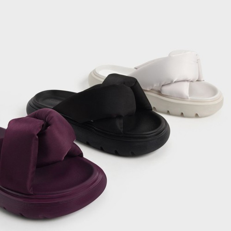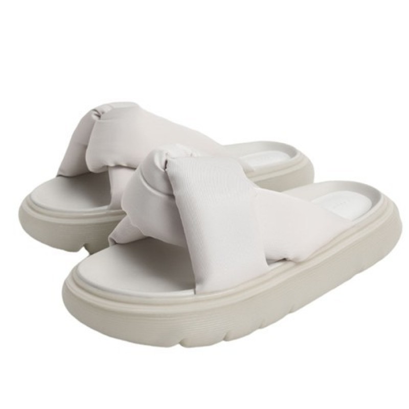 Charles & Keith Odessa Nylon Round-Toe Slide Sandals - White CK1-70380943, White Color