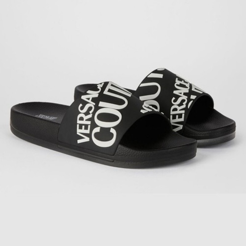 Versace Logo Allover Print Slide Flip Flops, Size 39