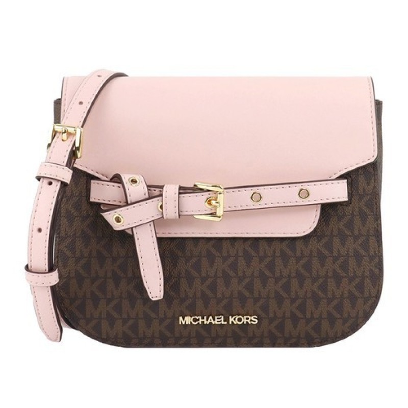 Michael Kors Emilia Small Pebbled Leather Crossbody Bag, Brown Pink Color