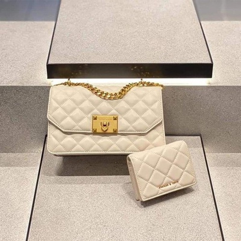Charles & Keith CK2-80781608 Checkered Bag, White Beige Color