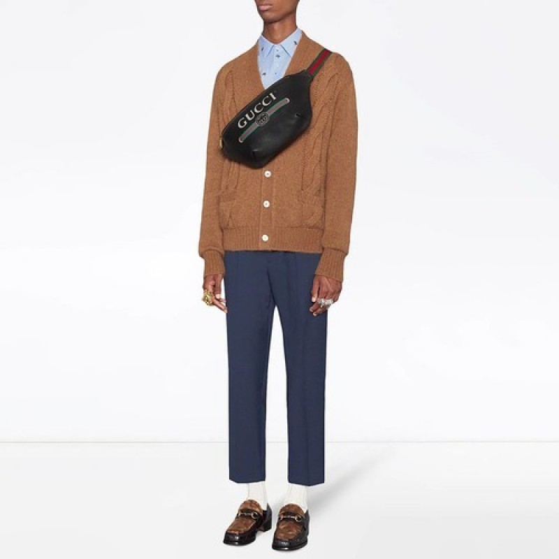 Gucci Logo-Print Leather Belt Crossbody Bag, Black Color