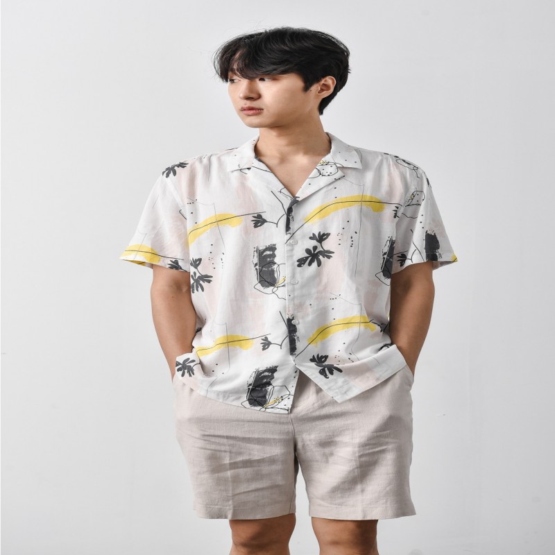 SHORT-SLEEVE LINEN PRINTED SHIRT - 10S21SHS008