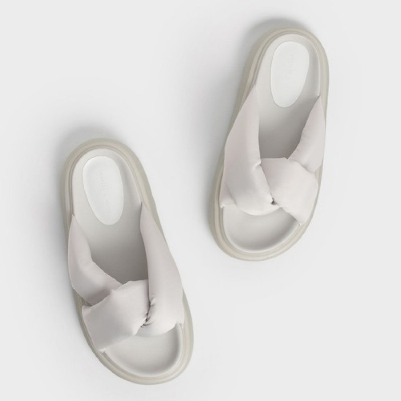 Charles & Keith Odessa Nylon Round-Toe Slide Sandals - White CK1-70380943, White Color