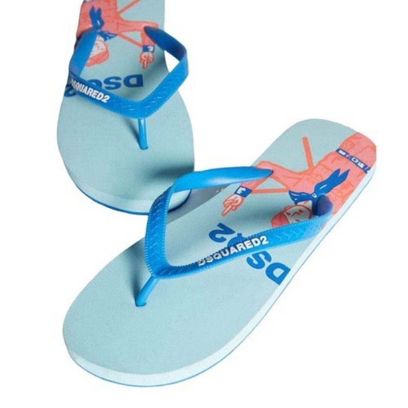 Dsquared2 Printed Rubber Flip-Flops Toe Flip Flops, Blue Color